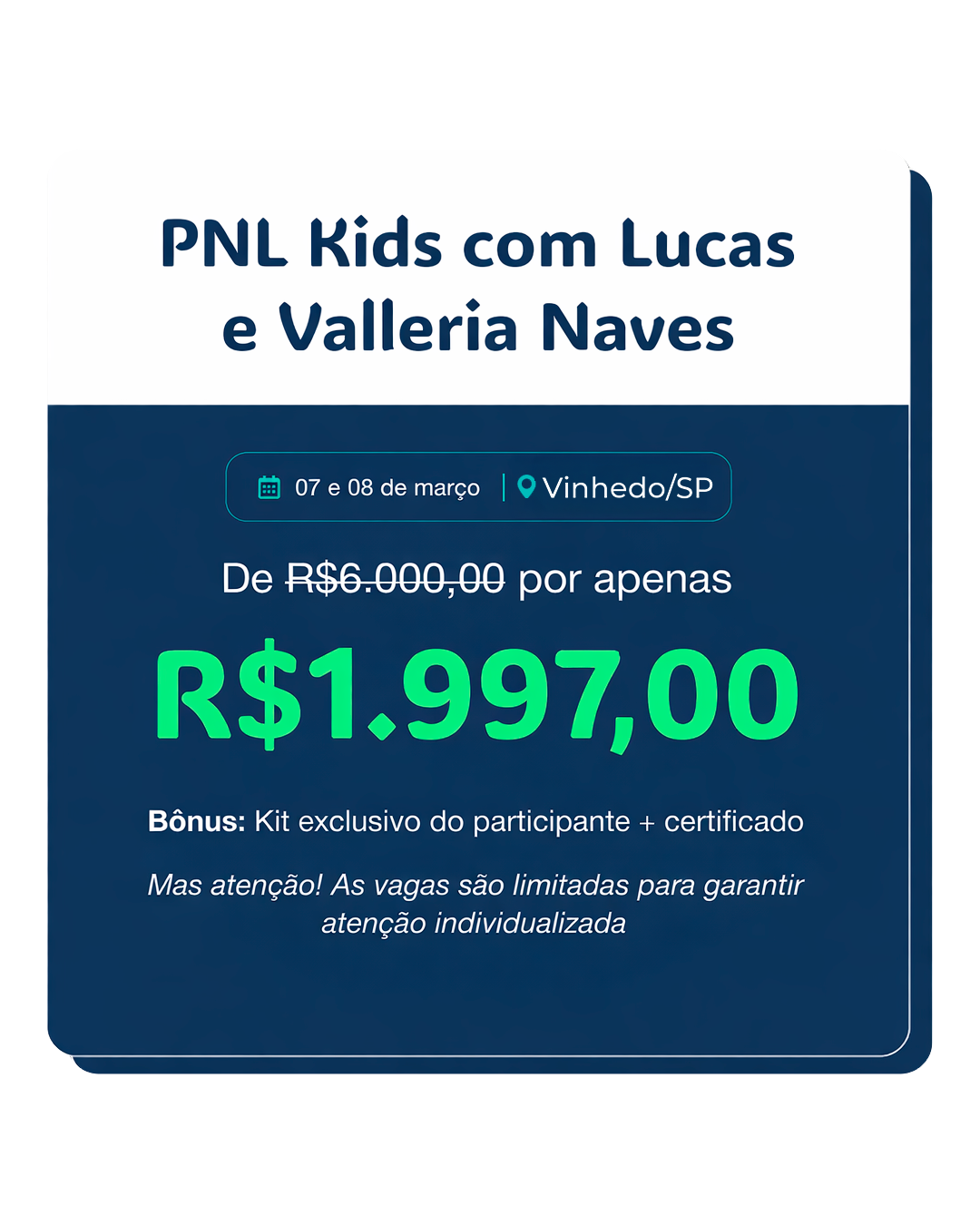 Lucas e Valleria Naves vão conduzir um treinamento presencial que ensina crianças de 7 a 12 anos a aplicarem PNL para vencer inseguranças, melhorar os estudos e se comunicar com clareza, desde cedo.